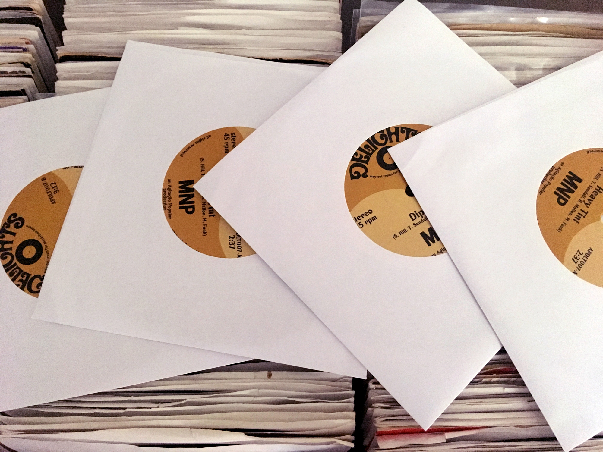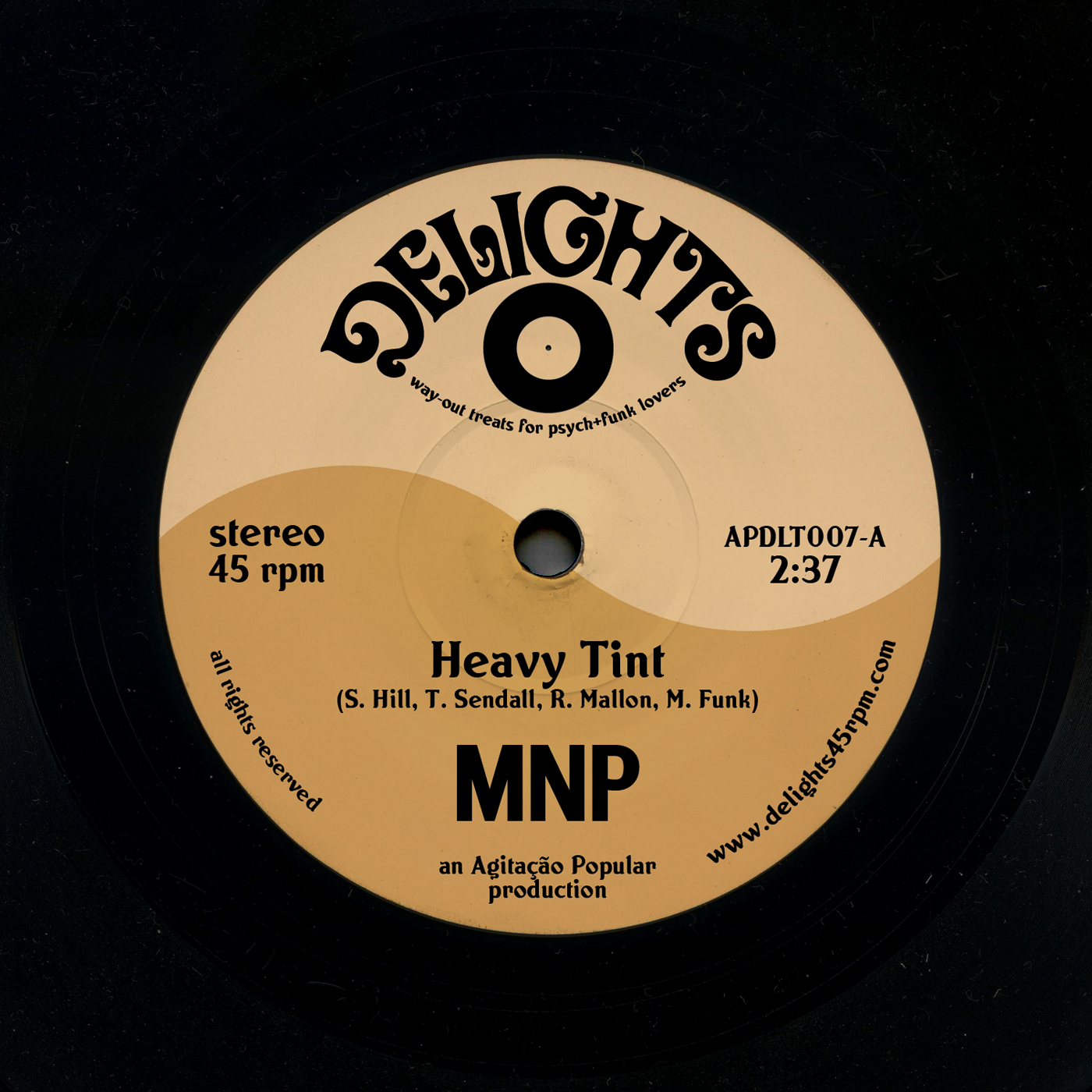 Markey Funk’s label Delights is proud to present its new 7” release – the debut single by MNP. Born in the minds of Brighton’s own Simon Hill (a.k.a. Beta Hector) and his long-time band-mates Toby Sendall (Baby Charles, Derriere) and Robin Mallon (Derriere), the music of MNP combines smoked-out grooves and dark cinematic psychedelia. The trio explores the sonic path laid by European film and library composers of the 1960’s, and creates its own kind of deep and moody library psych funk sound.