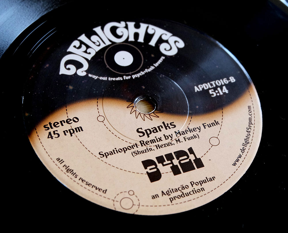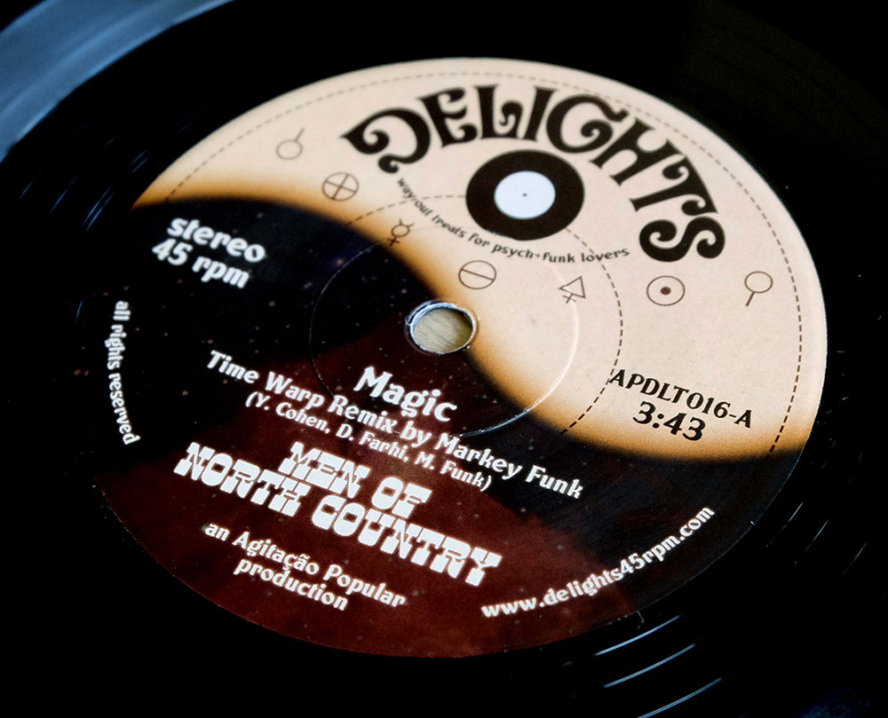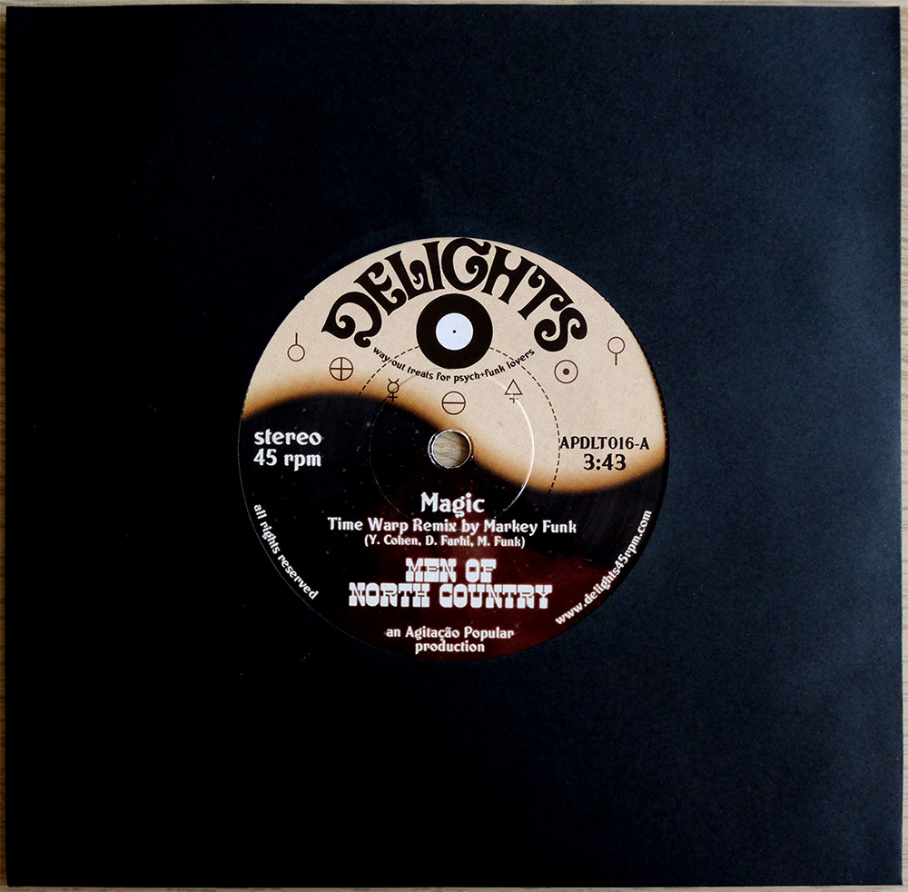 Both cuts are groove-heavy reworks of songs by local Israeli bands: “Magic” by Men of North Country – on the A-side, and “Sparks” by 3421 – on the flip. Both remixes are kaleidoscopic excursions into space age romance, sci-fi psychedelia, cinematic funk and the early days of electronic music.